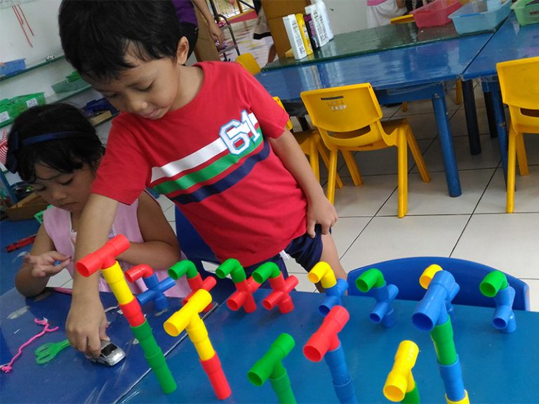 Children are encouraged to express their ideas and imagination freely through fun and exploratory activities.